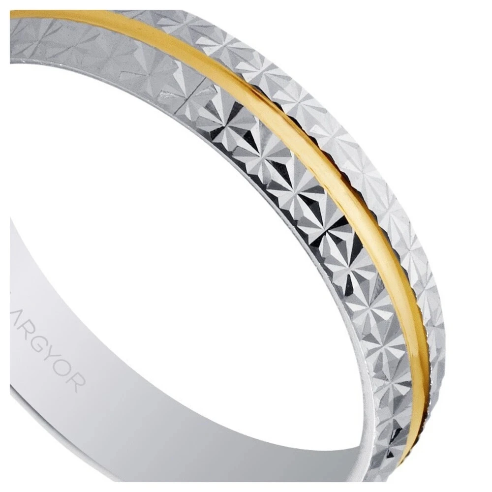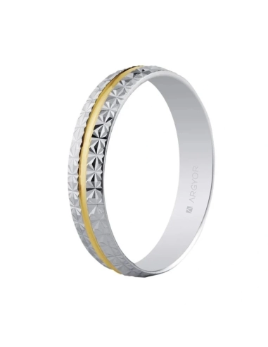 Alianza de boda en oro blanco 9k con efecto diamantado