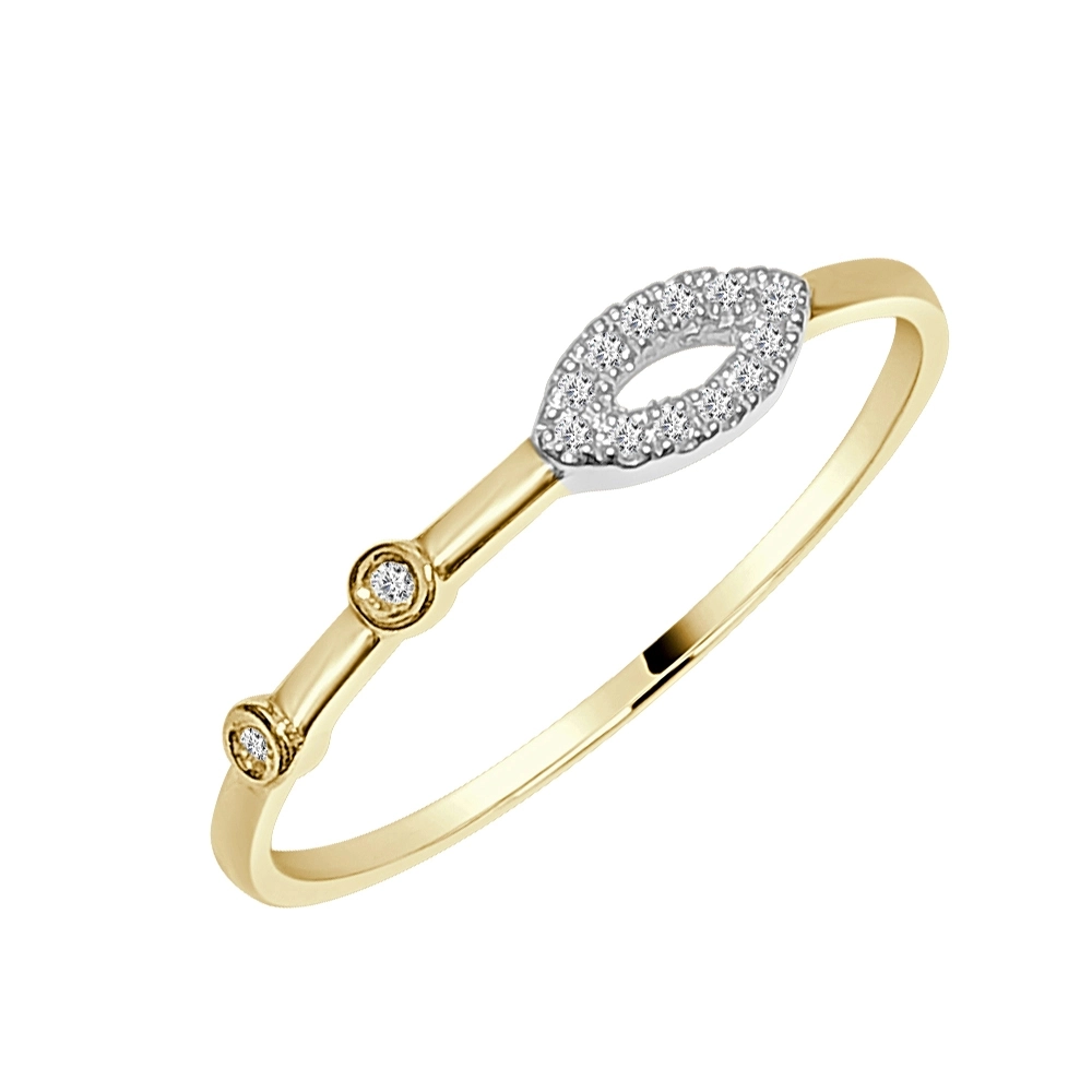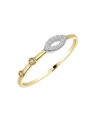 Su estructura minimalista se realza con un delicado motivo central en forma de hoja alargada, completamente engastada con brillantes diamantes. Dos diamantes adicionales, cuidadosamente colocados en la banda de oro amarillo, completan un diseño equilibrado y contemporáneo que resalta la belleza natural de cada piedra, haciéndolo un anillo de compromiso ideal.