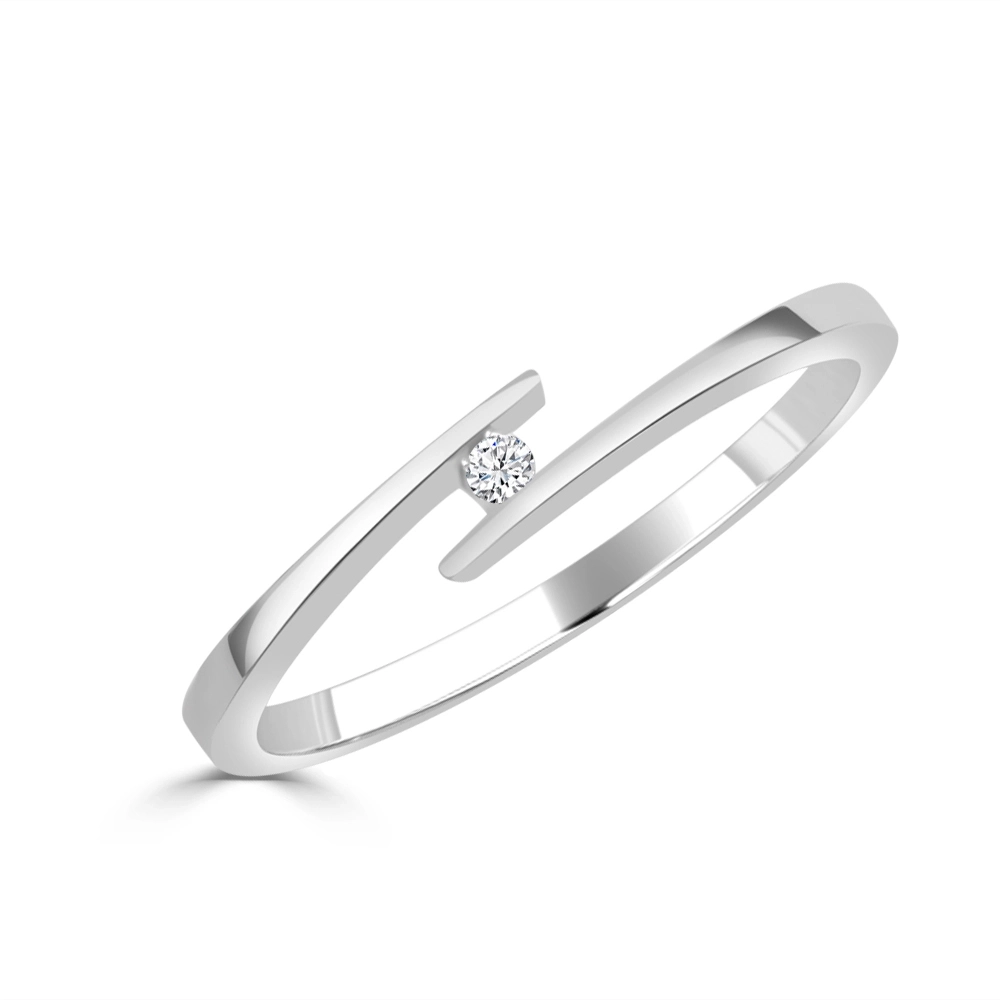Descubre el destello del anillo de compromiso "Carole", está fabricado en oro blanco de 18k con un diamante talla brillante  de 0.022ct.