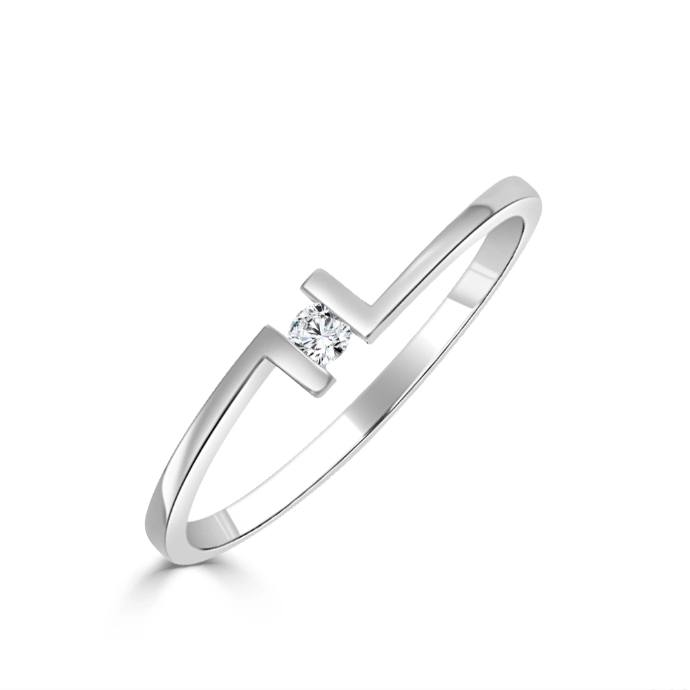El anillo de compromiso Clarette define elegancia gracias a su diseño enlazado en oro blanco 18kt y su diamante talla brillante de 0.035ct (H-SI) suspendido con un engaste minimalista que realza toda su luz. Una sortija con diamantes perfecta como anillo de pedida para quienes buscan una pieza fina, actual y cargada de significado. Ligero, brillante y absolutamente único.