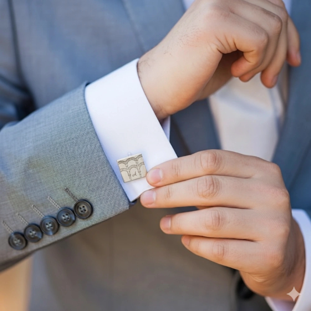 Cada pareja se fabrica de forma totalmente personalizada. Ya sea un escudo, una máscara, un símbolo arquitectónico o cualquier diseño que imagines, lo convertimos en un par de gemelos de novio que no pasarán desapercibidos. Un complemento hecho a medida para quienes buscan exclusividad, elegancia y significado.