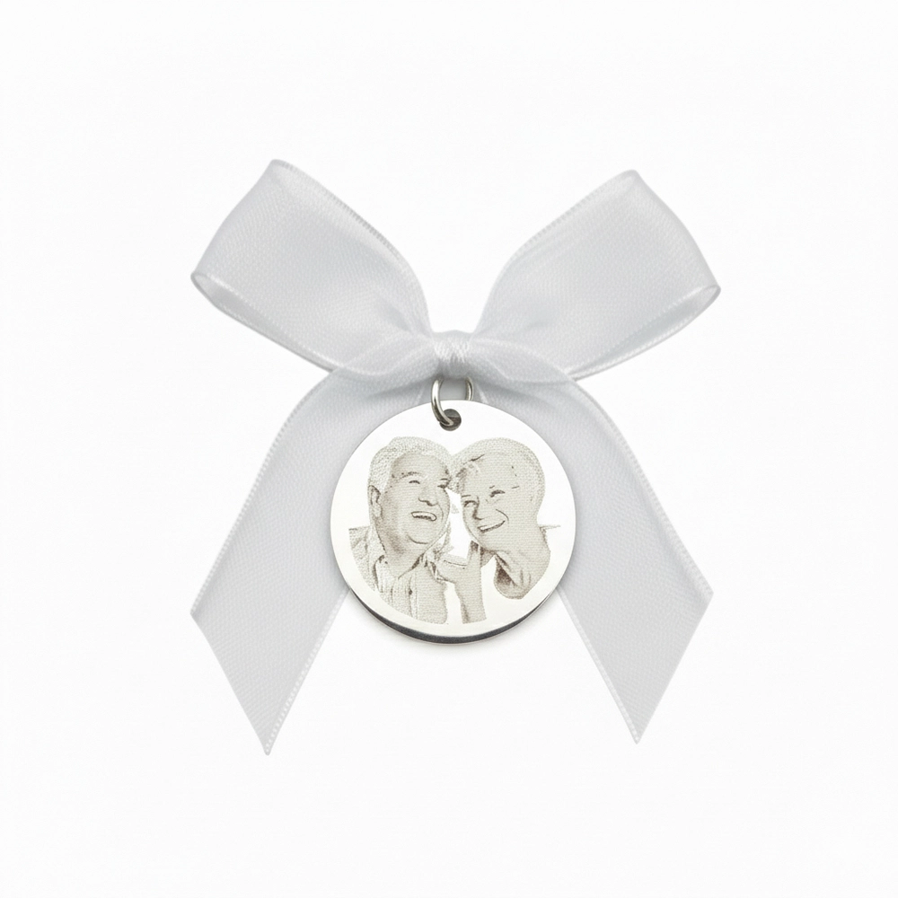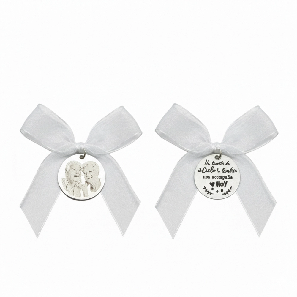 Inmortaliza la sonrisa de tus abuelos, el abrazo de tus padres o la imagen de ese ser querido que te acompaña desde el cielo. Gracias a nuestra técnica de fotograbado de alta precisión, la imagen de la pareja se captura con una claridad asombrosa, convirtiendo la medalla en un emotivo retrato en plata. Es una forma hermosa de sentir su presencia y amor en cada paso de tu camino nupcial.