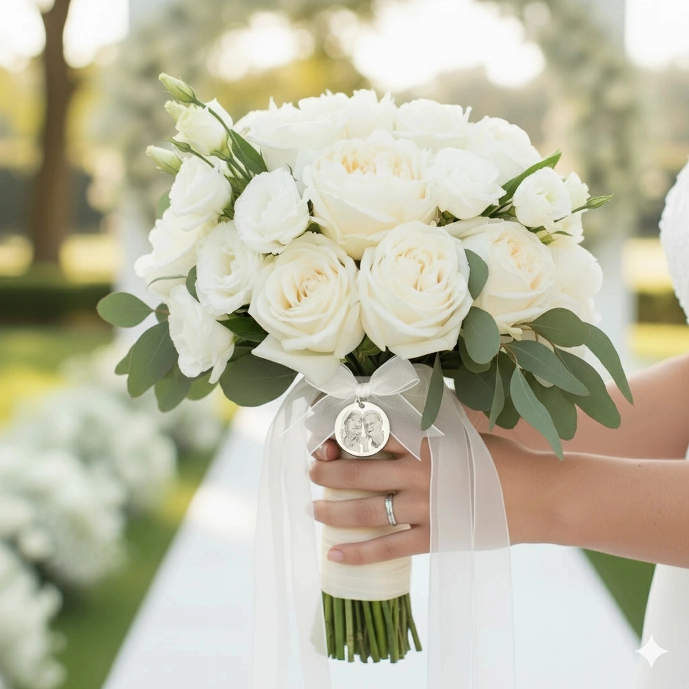 Esta medalla ramo de novia no es solo un accesorio, es un símbolo de amor eterno, de lazos familiares inquebrantables y de la presencia constante de quienes amas. Es una joya que te acompañará en uno de los momentos más importantes de tu vida y que, después de la boda, podrás conservar como un tesoro familiar, quizás en un joyero especial o incluso adaptándola para usarla como colgante o como llavero.