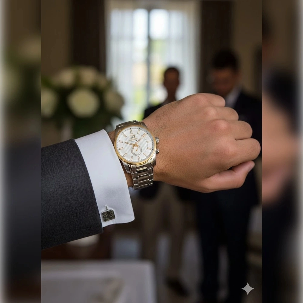El día de tu boda quedará inmortalizado en fotografías, recuerdos y emociones. Este reloj para novio será parte de esa historia. Elegante, sólido y sofisticado, es una declaración de personalidad.